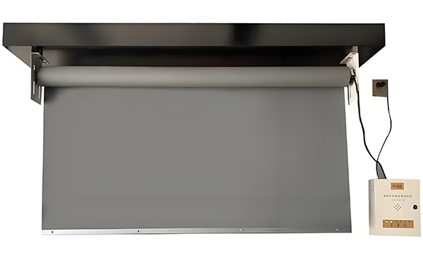 连接电源线和控制线,将文县挡烟垂壁安装在支架上,并用螺丝固定。
